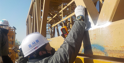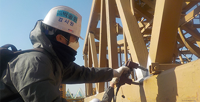 건설기계관리법 안전검사 (국토교통부) 타워크레인 정기검사 타워크레인 안전성 검사 타워크레인 전수비파괴 검사 타워크레인 정밀진단 타워크레인 전수비파괴 검사 검사대상 제조일로부터 15년 이상 경과된 타워크레인 적용범위 마스트,메인지브,카운터지브,턴테이블 등 주요부재 검사내용