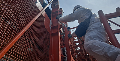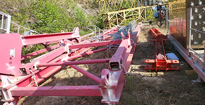 1) 구조부분 : Mast 및 Cage - 외형검사(비틀림, 휨, 균열여부) ① Cage 운행장치 : 장착Bolt 풀림 여부, 각종 스위치 상태 등 ② Roller 및 Bolt : Roller 접촉면 마모, 베어링 이완, Bolt 풀림,부식, 균열여부 등 ③ 안전고리 : 설치 수량 및 규격, 손상, 균열, 파단,마모 및 고정상태 등 ④ 기타 장치의 균열,변형,훼손 및 마모상태 등 점검 |